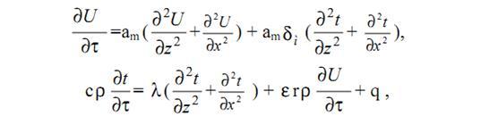Тепломассоперенос в металлических изделий в процессе понижения давления описывается дифференциальными уравнениями (1) – (3) при граничных условиях в виде выражений