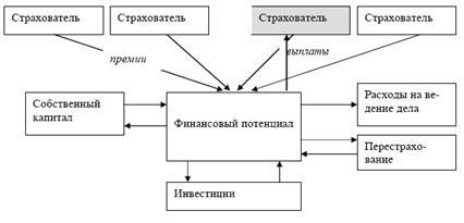 На рисунке представлен механизм формирования капитала страховой фирмы.