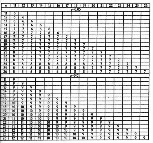 , в сумме составляющие Q, можно определить по Таблице I Приложения 1, где приведены критические значения Q для разных п.