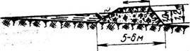 Водозадерживающие валы, широко применяемые для борьбы с ростом вершин оврагов. Они задерживают полевой сток, предотвращают рост оврагов, увлажняют почву на прилегающих участках и ослабляют эрозию нижележащих угодий. Наибольший эффект они дают при величине водосборов до 30 га с уклоном поверхности до 2 - 3° и до 5 га - при уклоне - 3-6°. Количество водозадерживающих валов и их размеры зависят от объема воды, подлежащей задержанию. Более эффективна система валов, рассчитанная на полное задержание ливневого стока 10%-ной обеспеченности (максимальный сток за 10 лет). Водозадерживающие валы чаще размещают перед вершиной действующего оврага - первый на расстоянии, равном двойной или тройной высоте вершины оврага. Гребни вала, перемычки и шпоры должны быть строго горизонтальными. Для ограничения движения воды вдоль вала на его концах устраивают шпоры, а на остальной части через каждые 50 м - перемычки. Широкое распространение получили валы, имеющие общую высоту 1,2 м, рабочую - 0,8 - 1,0 м, ширину по гребню - 2 - 2,2 м, ширину основания 5 - 6 м, откосы - полуторные или мокрый откос- двойной, сухой- одинарный. Устройство водозадерживающих земляных валов начинают со вспашки площади, намеченной под гребни вала и выемку. После этого осуществляется насыпка валов бульдозерами или скреперами.
