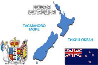 Новая Зеландия - островное государство, расположенное в южной части Тихого океана, в 1813 км. к юго-востоку от Австралии, состоит из двух больших островов - Северного (114 500 кв.км.) и Южного (150 700 кв.км), разделенных проливом Кука, и небольшого острова Стюарт на юге. Ближайшие соседи Новой Зеландии - острова Новой Калединии, Фиджи и Тонга. До Антарктики- 2300 километров, до берегов Южной Америки - 10600 км.