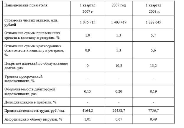 Показатели Общества за 1 квартал 2008 года Таблица 8.