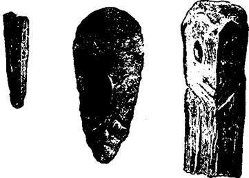 Орудия нового каменного века (неолита): каменные обтесанные топоры, каменное острие копья; каменная пилка