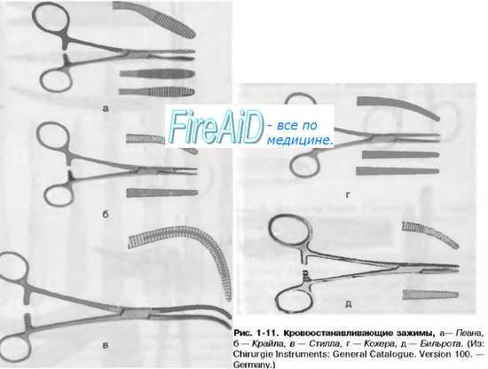 — прямые и изогнутые, с насечками на губках, но без зубчиков. 2. Зажимы Кохера