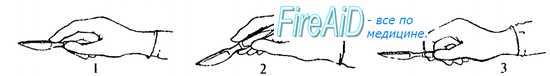 Рис. 2.2. Позиции скальпеля в руке