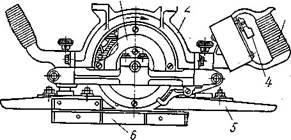 Регулирование толщины снимаемой стружки осуществляется поднятием или опусканием оси ротора при помощи тяги 5, перемещаемой гайкой 7. На рукоятке 6
