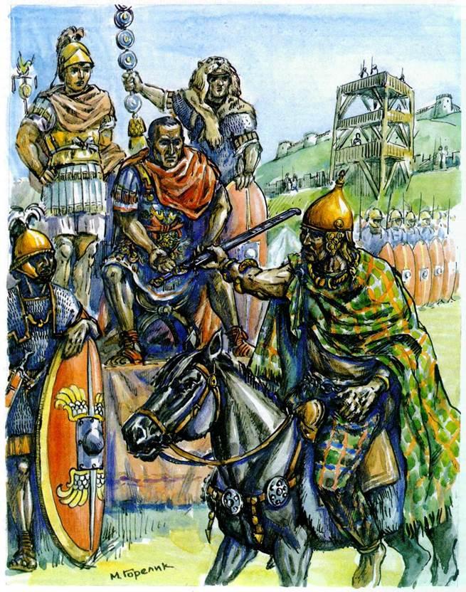 С начала нашей эры военная машина Рима полновластно царила на пространстве от Африки и Иберийского полуострова до Кавказа и Аравии. Несмотря на отдельные поражения, легионы были почти непобедимы. Подточили же могущество Рима развитие империи, внутренняя вражда, усталость и разложение нравов, а также мощный взлёт активности «варваров», овладевших тонкостями военного дела и подогреваемых завистью к благополучию и жадностью к богатствам римлян.