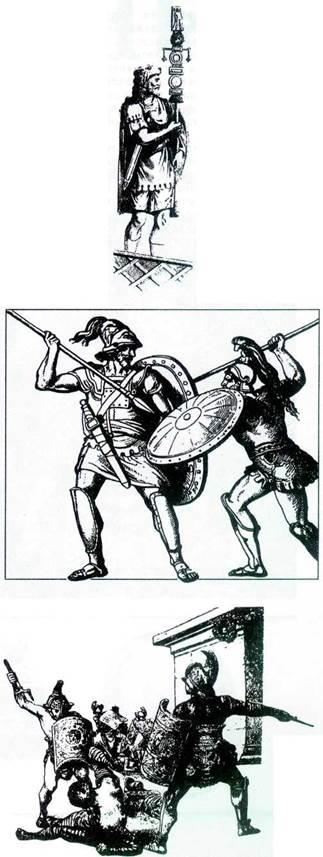 Легион мог, таким образом, сражаться и как монолитная фаланга, и легко маневрировать подразделениями-манипулами. О монолит римского строя разбивались атакующие толпы племенных ополчений и натиск конницы, а манипулирование на поле боя позволяло громить могучие македонские фаланги.