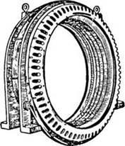 Лобовые части обмотки, на которые воздействуют значительные центробежные силы, крепят с помощью массивных кольцевых бандажей.