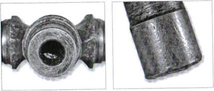 На рис. 1.6 показан поршневой палец двигателя после запуска автомобиля «ГАЗсль» с буксира при температуре -35 "С. Кроме поперечного излома на поверхности пальца имеются дугообразно расходящиеся продольные трешины, что указывает на хрупкое разрушение, которое может быть обусловлено хладноломкостью металла.
