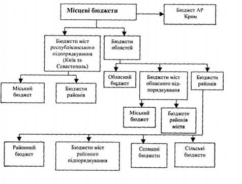 Місцеві бюджети в Україні включають бюджет Автономної Республіки Крим, обласні, районні бюджети, бюджети районів у містах та бюджети місцевого самоврядування.