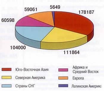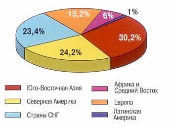 Рис. 1.Світові запаси вугілля станом на 1997 г. (млн.г)