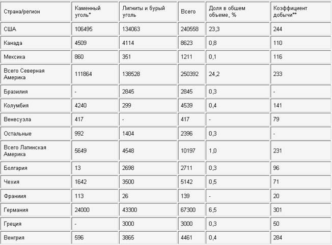 • в 1998—2000 роках в США і Китаї очікується стійке зростання видобутку вугілля при збільшенні вжитку вугілля в Північноамериканському і Азіатсько-тихоокеанському регіонах.