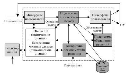 Типичная ЭС состоит из следующих основных компонентов: решателя (интерпретатора), рабочей памяти (РП), называемой также базой данных (БД), базы знаний (БЗ), компонентов приобретения знаний, объяснительного и диалогового компонентов (рис. 5.1).