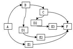 В багатьох випадках структура руху вагонопотоків не відповідає обмеженням застосування методів ГЕРТ-систем. У роботі запропонований метод перетворення мережевого графу, що описує структуру руху вагонопотоків, в еквівалентну послідовно-паралельну форму (рис 8, 9), що дозволяє для їх оцінки і аналізу застосовувати ГЕРТ-методи. Для оцінки значень часових характеристик вагонопотоку розроблено аналог топологічного рівняння Мейсона для нечітких величин. Рівняння використовується для визначення часу виконання всього нечіткого потокового графу.