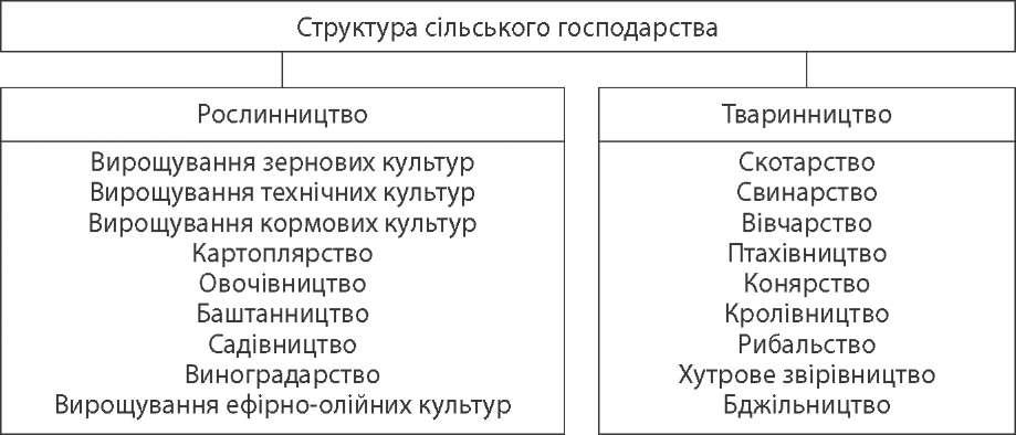 Також вирощують: хміль у Житомирській обл., льон-довгунець — у По- ліссі, тютюн і ефіроолійні культури — у Криму. Садівництво і виноградарство поширені в Лісостепу і Степу практично повсюдно. Найбільші плантації винограду розташовані в Криму. Тваринництво — галузь сільського господарства, що задовольняє потреби населення у м'ясо-молочних продуктах, а промисловість — у сировині. Тваринництво України традиційно спеціалізується на виробництві м'яса, м'ясопродуктів, молока, яєць та інших продуктів харчування. Головні га- лузі — скотарство, свинарство, вівчарство, птахівництво, конярство (від- роджується в Україні), кролівництво, рибальство, хутрове звірівництво, бджільництво. На структуру, розташування, спеціалізацію тваринництва України істотно впливає кормова база, неоднакова в різних регіонах держа- ви і залежна від ряду місцевих особливостей (кліматичних, земельних та ін.). Головна галузь тваринництва — скотарство. Основними продуктами скотарства є молоко, м'ясо і шкіра тварин. Скотарство розвинене повсюдно. Навколо великих міст, міських агломерацій, у приміських зонах Полісся, Лі- состепу розміщуються господарства, що спеціалізуються на молочно-м'ясній продукції. М'ясо-молочне тваринництво переважає в Степу. Свинарство — друга за значенням галузь тваринництва. Свинарство за- безпечує населення продуктами харчування — м'ясом і жиром, а легку про- мисловість — шкірою, щетиною та ін. Воно менше залежить від кормової бази, тому зосереджене в густонаселених районах, де добре розвинуті ово- чівництво, є відходи харчової промисловості. Основними постачальниками продукції свинарства є Лісостеп і Степ. Вівчарству в Україні належить допоміжна роль. Особливо інтенсивно вівчарство розвивається в Степу і на гірських пасовищах Карпат. Ця галузь спеціалізується на постачанні м'яса, вовни, овчини, жиру, овечого молока. Тому що вівчарство менш трудомістка галузь, воно розвивається в слабозасе- лених районах. Його розвитку в Україні приділяють мало уваги. Птахівництво орієнтується на фуражне зерно, що переробляється на корм, розвивається в приміських зонах великих міст. Ця галузь спеціалізу- ється на розведенні курей, індиків, качок, гусей, виробництві м'яса (брой- лери), яєць, пера і пуху. Промислове птахівництво розвивається в усіх при- родно-економічних зонах. Великими виробниками пташиного м'яса і яєць є лісостепові і степові області. Перше місце в Україні належить Криму. Зональна спеціалізація сільського господарства України | Зона | Спеціалізація | | рослинництва | тваринництва | | Полісся | Льон-довгунець, картопля, озиме жито, овес, овочі, кор- мові культури | Молочне та молочно-м'ясне скотарство, свинарство | | Лісостеп | Цукровий буряк, озима пшениця, картопля, ячмінь, гречка, бобові, кукурудза на силос, овочі | Молочне й м'ясо-молочне скотарство, свинарство, пта- хівництво | 81