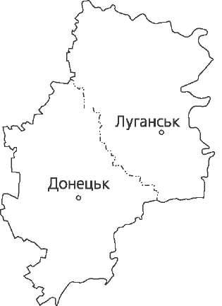 відроги Приазовської височини. Поверхня дуже порізана ярами, балками, долинами річок. Область багата на корисні копалини: великі поклади залізної руди Криворіжжя, манганової руди Нікопольського басейну; є поклади бокси- тів, нікелю, кобальту, золота, титану, кам'яного і бурого вугілля. Великі поклади гранітів, мармуру, каолінів, вогнетривких глин, вапняків, пісків тощо. Клімат помірно континентальний з жарким літом і порівняно холодною зимою. Пересічна температура січня -4,5...-6,5 °С, липня +21,5...+22,5 °С. Опадів 400—490 мм, переважно в теплий період року. Головна річка — Дніпро з притоками: Оріль, Самара з Вовчою, Мокра, Інгулець. У межах області розташовані Дніпродзержинське, Дніпровське і Каховське водосховища. Ґрунти: чорноземи звичайні та південні, трапляються лучно-чорноземні, дернові, піщані та ін. Область лежить у степовій зоні. Але в заплавах річок і в балках трапля- ються ліси. Найбільший об'єкт природно-заповідного фонду — Дніпровсько- Орільський заповідник. Донецька область Розташована в південно-східній части- ні України. На півдні омивається водами Азовського моря. Площа 26,5 тис. км2. Поверхня області — хвиляста рівни- на, розчленована численними річковими долинами, ярами і балками. Північно- східна частина — Донецька височина, захід — Придніпровська низовина, пів- день — Приазовська височина. Поширені в області й антропогенні форми рельєфу — терикони, кар'єри, провали. Найголовніший вид корисних копалин області — вугілля Донецького кам'яновугільного басейну. Є кам'яна сіль, доломіти, флюсові вапняки, вог- нетривкі глини, гіпс, мергель, будівельні матеріали, азбест, ртуть. Клімат помірно континентальний. Зима прохолодна, літо жарке. Середня температура січня -4.-7,8 °С, липня +20,8...+22,8 °С. Опадів 375—556 мм на рік, більшість в теплу пору року. З несприятливих кліматичних явищ найнебезпечніші пилові (чорні) бурі. Річки області належать до басейнів Сіверського Дінця, Дніпра та Азов- ського моря. Найбільша річка — Сіверський Донець, що має притоки: Ка- зенний Торець, Бахмут, Лугань. Озер мало, більше штучних водойм. Канал Сіверський Донець — Донбас. Серед ґрунтів області переважають середньо- і малогумусні чорноземи звичайні. В долинах річок поширені лучно-чорноземні й лучні ґрунти. На півдні трапляються солончаки і солонці. Область лежить у межах степо- вої зони. Природна степова рослинність збереглася тільки в заповідних територіях (Український степовий заповідник, національний природний парк «Святі гори»). Ліси займають 4,8 % території, вони трапляються в заплавах річок і в балках.  41