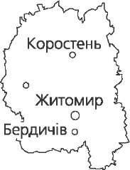 Житомирська область Розташована на півночі України. Пло- ща 29,9 тис. км2. Поверхня області — хвиляста рівнина. Північ області займає Поліська низовина, південь — Придніпровська височина, роз- членована густою мережею річкових долин і ярів. У межах Поліської низовини підно- ситься Словечансько-Овруцький кряж, складений кристалічними породами. З корисних копалин найважливіше значення мають будівельні матеріа- ли: граніти, лабрадорити, мармур, кварцити. Є каоліни, вогнетривкі глини, титанові руди, кварцові піски, самоцвіти (гранати, бурштин, топази, яшма тощо), торф, буре вугілля, радіоактивні мінеральні джерела та грязі. Клімат області помірно континентальний. Зима нехолодна, літо не- жарке, вологе. Середня температура січня -5,7 °С, липня +18,9 °C. Опадів 570—600 мм на рік, найбільше їх влітку. Річки належать до басейну Дніпра: Тетерів, Ірпінь, Здвиж, Уборть, Сло- вечна, Уж, Случ. Багато озер. Серед ґрунтів переважають дерново-підзолисті, болотяні та сірі лісові. На півдні є чорноземні ґрунти. Область лежить в зоні мішаних лісів, південна частина — в лісостеповій зоні. Лісами вкрито 28 % площі області. На території області багато об'єктів природно-заповідного фонду, в тому числі Поліський заповідник. Внаслідок катастрофи на Чорнобильській АЕС територія зазнала радіоактивного за - бруднення. Закарпатська область Розташована на заході України. Пло- ща 12,8 тис. км2. За характером рельєфу територія За- карпатської обла сті поділяється на дві частини: гірську (Українські Карпати) і рівнинну (Закарпатська низовина). На гори припадає близько 4/5 території. Гір- ські хребти Карпат витягнуті з північного заходу на південний схід. Закарпатська низовина має висоти 105—120 м з незначним похилом від гір до р. Тиси. В області є різні корисні копалини: кам'яна сіль, буре вугілля, ртутна руда, алуніти, золото, поліметалеві руди, туфи, доломіти, перліти, бентоні- тові глини та ін. Дуже багато джерел мінеральних вод. Клімат помірно континентальний. На низовині зима коротка, м'яка, температура січня -2...-3 °С, літо тепле, середня температура липня +19... +21 °С. В горах літо прохолодне, температура липня від +9 до +13 °С, зима тривала, холодна, температура січня від -5 до -9 °С. Опадів 642—1411 мм, залежно від висоти. Річки належать до басейну Тиси, притоки Дунаю. Найбільше озеро — Си- невир.  42
