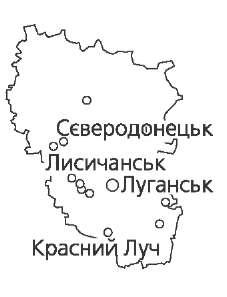 Кіровоградська область Розташована в центральній частині України, в межиріччі Дніпра і Південно- го Бугу. Площа 24,6 тис. км2. Основну частину території області за- ймає Придніпровська височина. У річко- вих долинах на поверхню часто виходять кристалічні породи Українського щита, що подекуди утворюють в річищах по- роги і перекати. Область багата на корисні копалини. Тут розміщений Дніпровський буро- вугільний басейн. Є родовища горючих сланців, торфу. На території області знаходиться частина Криворізького залізорудного басейну. Є нікелево-хромі- тові руди (Побужжя), золото, графіт (Завальське родовище), різні будівельні матеріали. Клімат області помірно континентальний. Зима м'яка, з відлигами. Літо жарке. Середня температура січня -5,4.-6,5 °С, липня +20...+21,4 °С. Опа- дів 400—490 мм на рік. Трапляються посухи, пилові бурі. Річки належать до басейну Дніпра (Цибульник, Інгулець) та Південного Бугу (Інгул, Синюха, Синиця). Найбільші водосховища — Кременчуцьке та Дніпродзержинське. Збудовано водовід Дніпро — Кіровоград. Область лежить у лісостеповій і степовій зонах. У лісостеповій переважають чорноземи типові, опідзолені, ясно-сірі та сірі лісові ґрунти, в степовій — чор- ноземи звичайні. Природна рослинність збереглася лише на схилах ярів і балок. Ліси займають 6,8 % території. Є об'єкти природно-заповідного фонду. Луганська область Розташована в південно-східній части- ні України. Площа 26,7 тис. км2. На півдні знаходиться Донецька височи- на з найвищою точкою Лівобережної Укра- їни — г. Могилою-Мечетною (367 м). Серед- ня частина області — долина Сіверського Дінця; на півночі — відроги Середньорусь- кої височини. Поширені антропогенні фор- ми рельєфу — терикони, кар'єри. Найголовніша корисна копалина — кам'яне вугілля. Є значні поклади вапняків, крейди, мергелів, пісковиків, лікувальні мінеральні джерела. Клімат помірно континентальний. Зима прохолодна, літо жарке. Середня температура січня -7.-8 °С, липня +21 .+22 °С. Опадів випадає 400—550 мм на рік. Досить часто трапляються суховії, засухи. Головна річка — Сіверський Донець. Його притоки: Айдар, Деркул, Крас- на, Лугань, Велика Кам'янка. Є озера. На більшій частині території поширені чорноземні ґрунти різних типів. Поширені також дерново-лучні, опідзолені та інші ґрунти. Область лежить у степовій і частково лісостеповій зонах. Лісами вкрито 0,6 % території. Вони поширені в заплавах і балках. Природні ландшафти дуже змінені й збереглися тільки в Луганському заповіднику.  45
