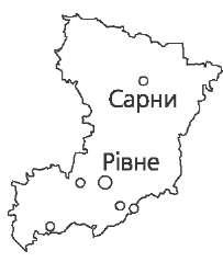 (Криворізький залізорудний район). Є поклади граніту, глин, піску, торфу, джерела мінеральних лікувальних вод (Миргород, Нові Санжари тощо). Клімат помірно континентальний. Зима помірно холодна, літо тепле. Середня температура січня -6,5.-7,5 °С, липня +20...+21 °С. Опадів 450— 565 мм на рік, переважно у теплий період року. З несприятливих кліматич- них явищ трапляються суховії. Найбільші річки Дніпро і його притоки Ворскла, Сула, Псел. На Дніпрі — Кременчуцьке та Дніпродзержинське водосховища. 70 %території займають чорноземні ґрунти. Трапляються сірі лісові та опідзолені. Область лежить у лісостеповій зоні. Ліси займають близько 7,5 % території. Природна рослинність дуже змінена діяльністю людини. Є об'єкти природно-заповідного фонду. Рівненська область Розташована на північному заході України. Площа 20,1 тис. км2. Північна частина лежить у межах По- ліської низовини. Південну частину займає Волинська височина, яка являє собою під- вищену хвилясту лесову рівнину, розчлено- вану річками. З південного заходу в область заходить рівнина Малого Полісся. На тери- торії області поширені карстові явища. Із корисних копалин найважливіше значення мають торф, мінеральні будівельні матеріали (граніт, базальти, глина, крейда, пісок), каолін, уні- кальні запаси бурштину, є джерела мінеральних вод типу миргородської і трускавецької. Клімат помірно континентальний. Середня температура повітря січня -4,8. -5,6 °С, липня +18,1 .+18,6 °С. Опадів 600—650 мм на рік, більше влітку. В області багато річок і озер. Найбільша річка — Прип'ять, решта — її притоки: Горинь, Ствига та дві ділянки Стиру з притоками. Великими озе- рами є Нобель, Біле, Лука, Велике Почаївське. Ґрунти області різноманітні. Найпоширенішими є ясно-сірі, сірі лісові, темно-сірі опідзолені та дерново-підзолисті. На вододілах у лісостеповій час- тині області трапляються чорноземи. Область лежить у лісовій (Полісся) і лісостеповій зонах. На Поліссі лі- систість понад 45 %, у Лісостепу — до 15 %. Тут розташований Рівненський природний заповідник. Сумська область Розташована в північно-східній части- ні України. Площа 23,8 тис. км2. У східну і північно-східну частину області заходять відроги Середньорусь- кої височини, решта території лежить у межах Придніпровської низовини. Поверхня має загальний нахил на пів- денний захід.  48
