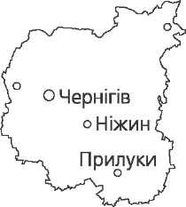 Чернігівська область Розташована на півночі Лівобереж- ної України, в басейні Десни. Площа 31,9 тис. км2. Територія області лежить переважно в межах Придніпровської та Поліської низовин. На південному заході в межі об- ласті заходить Полтавська рівнина. По- верхня дуже порізана ярами і балками, трапляється карст. Із корисних копалин найважливіше значення мають поклади нафти і природного газу в південно-східних районах. Є торф, вапняки, гіпси, піс- ки, глини, мергелі. Клімат області помірно континентальний. Зима помірно холодна, літо по- мірно тепле. Середня температура січня -6.-8 °С, липня +18,0...+19,5 °С. Опадів 550—580 мм, переважно в теплий період року. Річки області належать до басейну Дніпра, що протікає вздовж західної межі області. Головна річка — Десна, що має притоки Убідь, Мена, Снов, Сейм, Доч, Остер. На півдні — Удай і Сула. На півночі області переважають дерново-підзолисті ґрунти, на півдні — чорноземи вилуговані та опідзолені. Трапляються ясно-сірі лісові, темно-сірі та інші ґрунти. Область лежить у зонах мішаних лісів і лісостеповій. Ліси займають близько 20 % території. Північно-східна частина області забруднена радіо- нуклідами внаслідок катастрофи на Чорнобильській АЕС. Є багато територій і об'єктів природно-заповідного фонду.  53