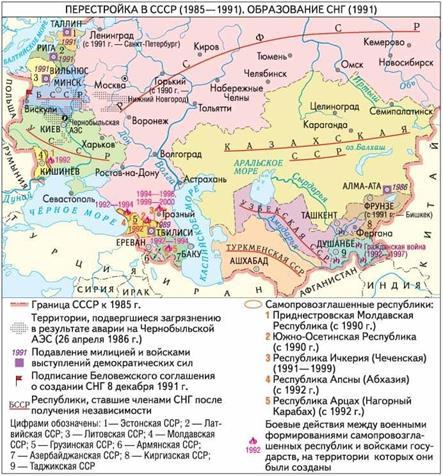 вали ракеты средней дальности в Европе. В 1989 г. СССР вывел свои войска из Афганистана. В 1991 г. был подписан договор между двумя сверхдержавами о сокращении стратегических вооружений,