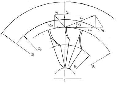 Окружная составляющая абсолютной скорости газов на выходе из рабочего колеса