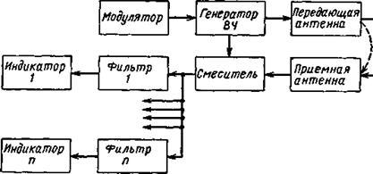 Устройства с большим числом анализирующих фильтров характеризуются также сложностью и громоздкостью анализатора. Если использовать один перестраиваемый фильтр, с помощью которого последовательно просматриваются различные участки дальности, то анализирующее устройство упрощается, но зато резко увеличивается время обзора заданной области.