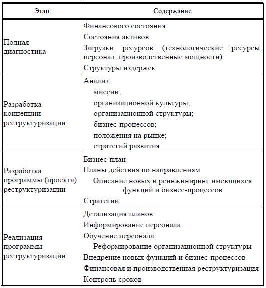 Реструктуризация – один из эффективных рыночных инструментов развития успешного бизнеса. Неудачи реструктуризации отдельных российских предприятий свидетельствуют скорее о недостаточно продуманной и проработанной организации ее проведения, чем о недостатке ее как метода.