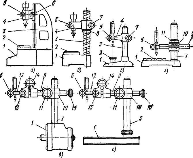 (рис. 3, а). Гильза и ушко служат для крепления индикатора на стойках, штативах и приспособлениях. Поворотом ободка 2,