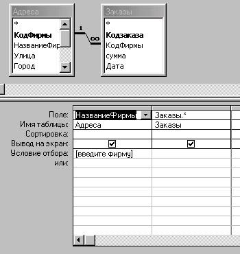 . Создайте запрос на выборку "Заказы по фирме", который настройте, как показано на рисунке: