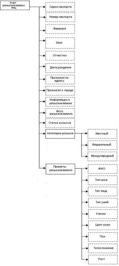 В курсовом проекте стоит задача создания базы данных, отображающую систему по учету разыскиваемых лиц. Также нужно обеспечить просмотр, поиск и корректировку информации созданной базы данных. Выходные формы должны содержать следующее: