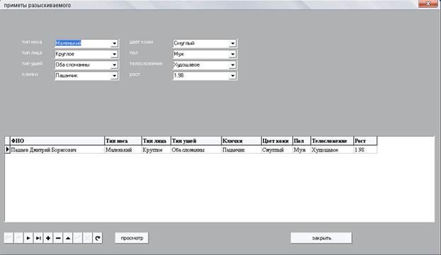 Рис.10 Отчёт приложения по таблице 2 «приметы разыскиваемого»