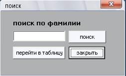 Приложение содержит раздел «выборка» с помощью данного раздела пользователь может ввести фамилию разыскиваемого лица в специальную строку и нажать кнопку «просмотр», благодаря чему откроется окно отчёта содержащего полную информацию о разыскиваемом лице. Раздел приложения «выборка» представлен на рис.7.