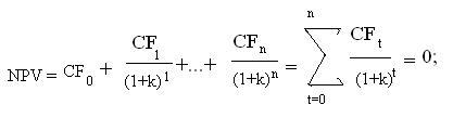 3) метод чистого приведенного значения (Net Present Value, NPV) величины чистой прибыли генерируемой проектом;