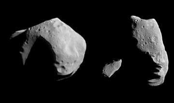 Рис.1. Композиция снимков трех астероидов: Матильда, Гаспра и Ида (слева направо). Снимки сделаны аппаратом Galileo.
