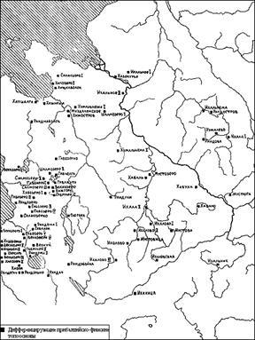 Карта № 1 Дифференцирующие прибалтийско-финские топоосновы