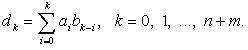 d[k] := d[i] + a[i] * b[k-i]; // нахождение элемента многочлена-результата