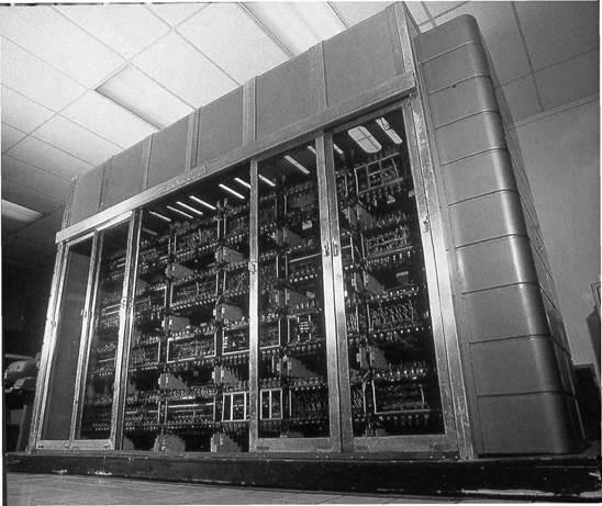 Рис.3 JOHNNIAC был достойным продолжателем своих предшественников, MANIACa и ILLIACa. Приступив к работе в 1953 году, он функционировал до 1966-го, наработав за это время 50000 машинных часов. Созданный под руководством Фон Неймана, он был вариантом современного сервера и использовал все новейшие достижения. Данная машина, хотя и состояла всего из нескольких сотен электровакуумных ламп, в высоту имела 2м и весила несколько тонн.