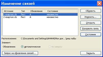Тема: СВЯЗИ МЕЖДУ ФАЙЛАМИ И КОНСОЛИДАЦИЯ ДАННЫХ В MS EXCEL