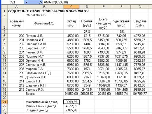 Конечный вид таблицы приведен на рис.1. 4.