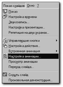 14. Перейдите ко второму слайду и выберите Настройку анимации