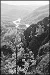 Экскурсионный маршрут "Каменная корона" проходит по левому берегу Белого Июса, по гребню, разделяющему его долину и долину ручья Састыкжул. Являясь непродолжительным по времени прохождения и простым, с точки зрения техники, траверс этого хребта необычайно живописен. С вершин сопок, взметнувшихся над Июсом более чем на триста метров открывается величественная панорама окрестностей Малой Сыи. От изъеденных водой известняковых скал можно увидеть и двуглавый Ызых и темноту входов гротов уже знакомого нам массива Тогыз-Аз. Мы пройдем мимо величественного провала входа в пещеру Крест, чуть ниже нашего пути, под каменной аркой останется раскапываемый вход в Подъарочную. К автомобильной дороге, связывающей Шира и Коммунар мы спустимся по глубокому каньону, в левой стене которого гротом Широкий начинается одно из длиннейших подземелий России - пещера Ящик Пандоры. Наш путь начнется из села Малая Сыя. Первый километр пути проляжет по автотрассе, по которой мы отправимся в сторону Шира. Прямо из деревни, от бетонной будки автобусной остановки на южном, обращенном к нам склоне Сыйского хребта виден белый треугольный обрыв старого известкового карьера. Наш путь лежит к логу, расположенному чуть правее взорванной скалы. Оставив слева деревянную скульптуру деда и пройдя огороды, с трассы нужно свернуть чуть левее на старую проселочную дорогу, ведущую к заброшенному карьеру. Метров через триста эта дорога закончится на площадке с остатками печь для обжига известняка, а вправо вверх, мимо старого лиственничного пня отойдет хорошо заметная тропа, протоптанная спелеологами ко входу в пещеру Крест. Если присмотреться, эту тропу, серпантином поднимающуюся на хребет, можно заметить и из деревни. Начнем подъем. Более трехсот метров предстоит нам подниматься по дорожке, проложенной сперва по дну лога, потом по крутым осыпям склона. Не торопитесь. У альпинистов есть шутливое правило, гласящее, что идти нужно чуть медленнее, чем позволяют силы. Даже находясь в отличной спортивной форме, сделайте несколько остановок на подъеме, оглядитесь по сторонам. Честное слово, открывающиеся виды того заслуживают. Взгляните на котловину, в которой раскинула свои домишки Малая Сыя. Отсюда, с высоты видна и деревня и возвышающаяся за ее околицей гора Пилотка. Вершина ее гораздо ниже нас. Но, кое в чем, этой горе нет равных - находясь среди горных хребтов, она не связана основанием ни с одним из них. Лог Круглый почти опоясывает куполовидную горку. Историки и этнографы считают, что подобные обособленные горки почитались в древности народами Сибири. Аборигены считали их центром мира и символом рождающейся земли. Может быть поэтому и основали свое поселение в устье лога на склоне Пилотки жрецы и художники древнекаменного века.  Продолжаем подъем. У старой лиственницы двадцатиметровым провалом начинается пещера Крест. Спуск в нее не возможен без специального снаряжения. Здесь, на вытоптанной площадке, среди оголившихся узловатых корней хорошо заметная тропка заканчивается. Дальнейший путь пойдет, то совсем по целине, то по остаткам тропки, скорее угадывающимся, чем действительно видимым. Оставим вход слева. До вершины остается совсем немного. Мы вновь оказываемся среди смешанного редколесья. В разрывах между деревьями видны то плесы Белого Июса, то скалы на 