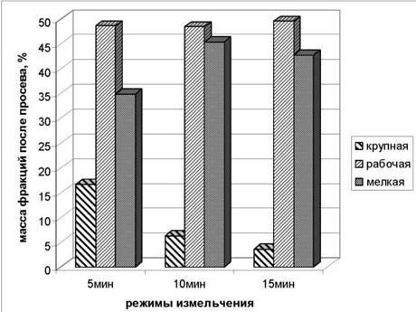 выбор оптимальных режимов измельчения, позволяющих максимально