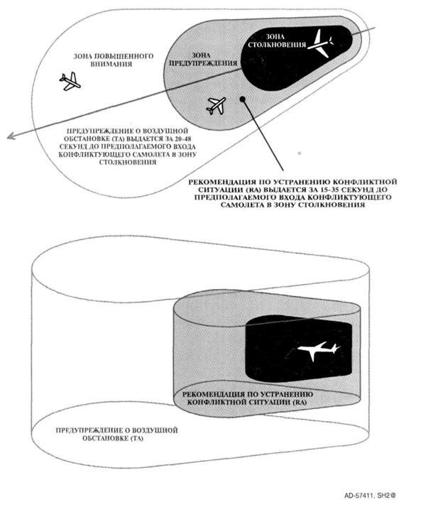 Система TCAS 2000 формирует вокруг самолета, на котором она установлена, защищенный участок воздушного пространства, именуемый «зоной столкновения».