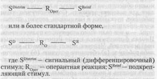 11. Оперантное поведение может быть наиболее адекватно описано с помощью следующих трех терминов: сигнальный или дифференцировочный стимул, оперантная реакция, подкрепляющий стимул, и наиболее адекватно понято как функциональные отношения между ними.