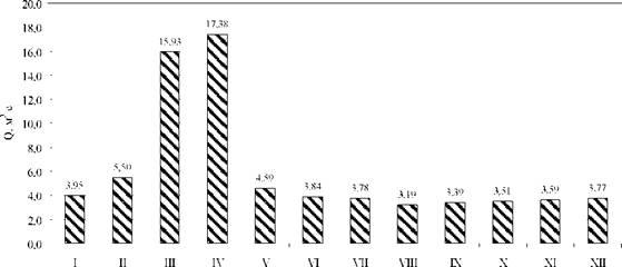 б) р. Тихая Сосна - г. Алексеевка Рис. 1. Календарное распределение расходов воды в верховье Дона