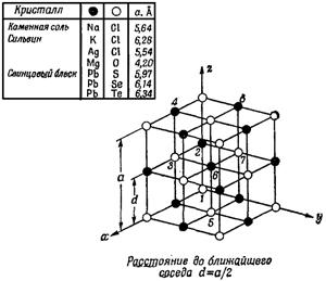 На рисунке показано трехмерное строение обычной соли (хлористого натрия). Строго говоря, кристалл состоит не из атомов, а из ионов. Ионы — это атомы с излишком или с нехваткой электронов. В кристалле соли мы находим ионы хлора (атомы хлора с лишним электроном) и ионы натрия (атомы натрия, лишенные одного электрона). Ионы в твердой соли скреплены друг с другом электрическим притяжением, но в воде некоторые из них, притянувшись к положительному водороду или отрицательному кислороду, начинают свободно двигаться. На предыдущем рисунке виден освободившийся ион хлора и другие атомы, плавающие в воде в виде ионов. На рисунке нарочно подчеркнуты некоторые детали процесса. Заметьте, например, что водородные концы молекул воды обычно обступают ион хлора, а возле иона натрия чаще оказывается кислород (ион натрия положителен, а атом кислорода в молекуле воды отрицателен, поэтому они притягиваются). Можно ли из рисунка понять, растворяется ли здесь соль в воде или же выкристаллизовывается из воды? Ясно, что нельзя; часть атомов уходит из кристалла, часть присоединяется к нему. Процесс этот динамический, подобный испарению; все зависит от того, много или мало соли в воде, в какую сторону нарушено равновесие. Под равновесным понимается такое состояние, когда количество уходящих атомов равно количеству приходящих. Если в воде почти нет соли, то больше атомов уходит в воду, чем возвращается из воды: соль растворяется. Если же «атомов соли» слишком много, то приход превышает уход, и соль выпадает в кристаллы. Мы мимоходом упомянули, что понятие молекулы вещества не совсем точно и имеет смысл только для некоторых видов веществ. Оно применимо к воде, в ней действительно три атома всегда скреплены между собой, но оно не очень подходит к твердому хлористому натрию. Хлористый натрий — это ионы хлора и натрия, образующие кубическую структуру. Нельзя естественным путем сгруппировать их в «молекулы соли».