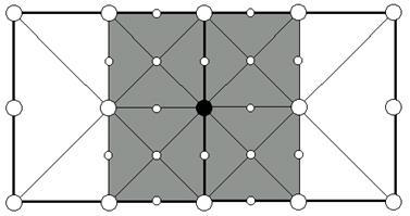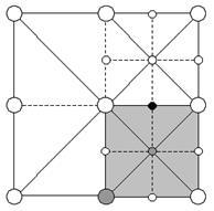Рис. 8. Каждая реберная вершина имеет 4 соседних подквадрата, которые используют ее как угловую. Если любой из этих квадратов включен, то и вершина должна быть включена. К примеру, черная вершина должна быть включена если включен один из серых квадратов.