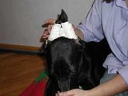 Фото 6. Так уши щенка выглядят после приклеивания коротких узких полосок пластыря.